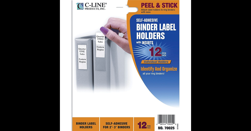 C-Line Self-Adhesive Ring Binder Label Holders, 1 3/4" x 3 1/4" for to Binder Capacity