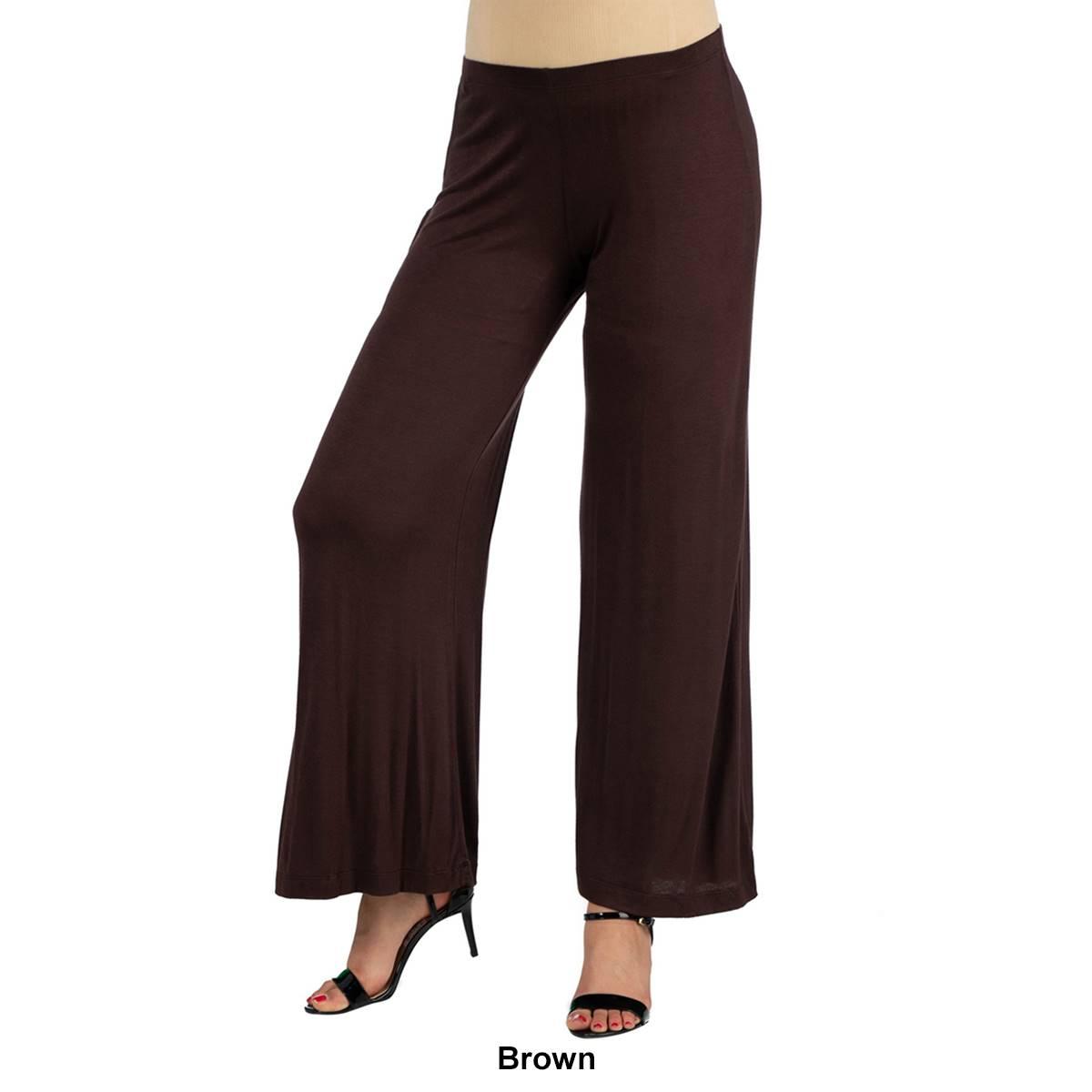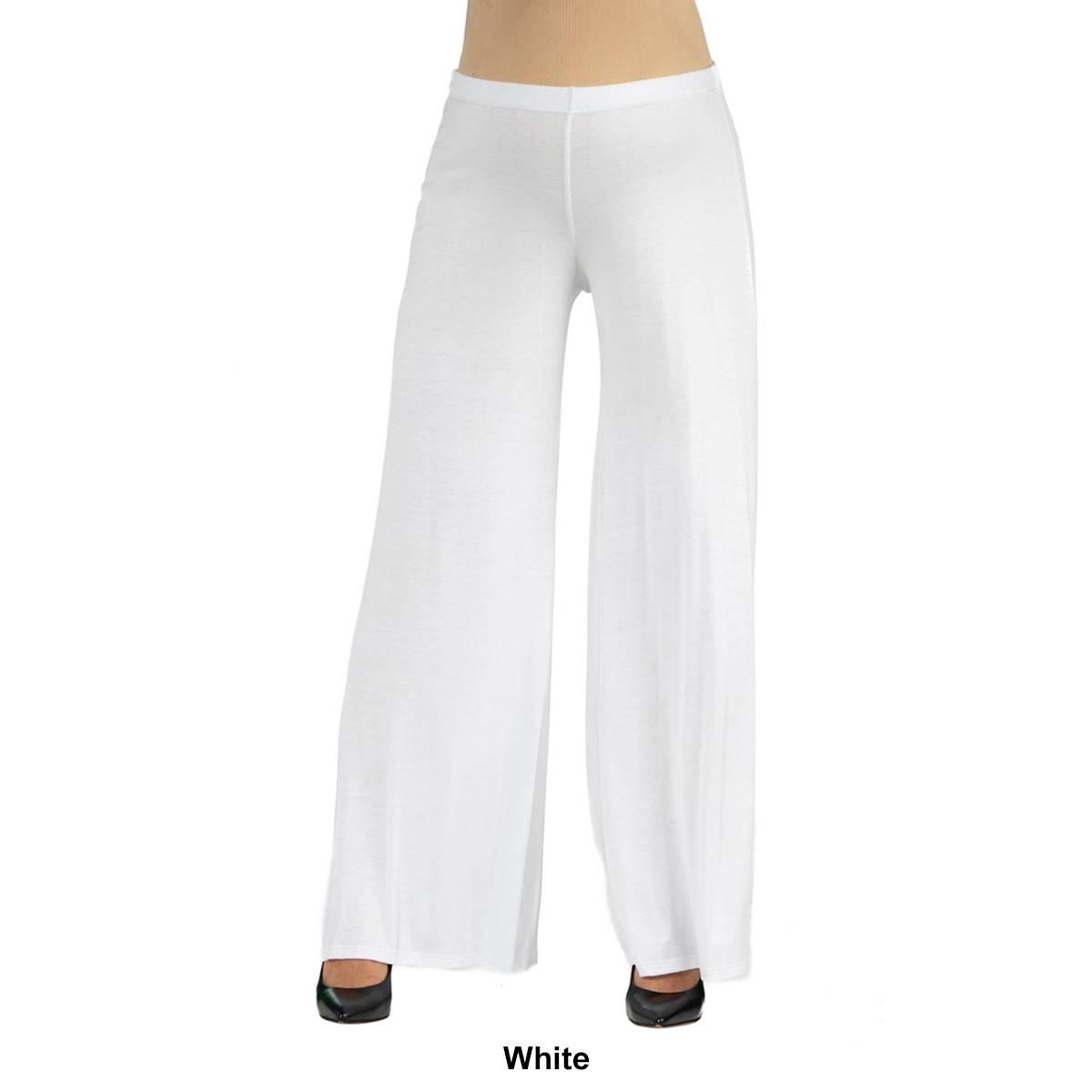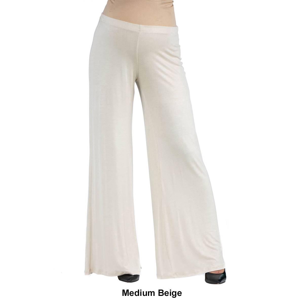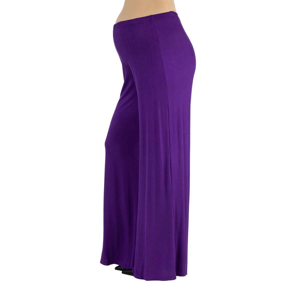 These comfortable Womens 24/7 Comfort Apparel palazzo maternity pants are so easy to wear you'll want them in every color. Featuring an elastic waist, stretch material, flared pant legs, and a relaxed fit.