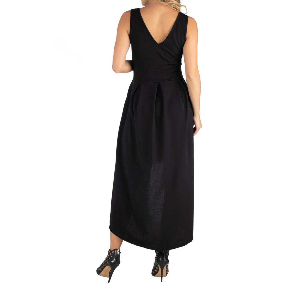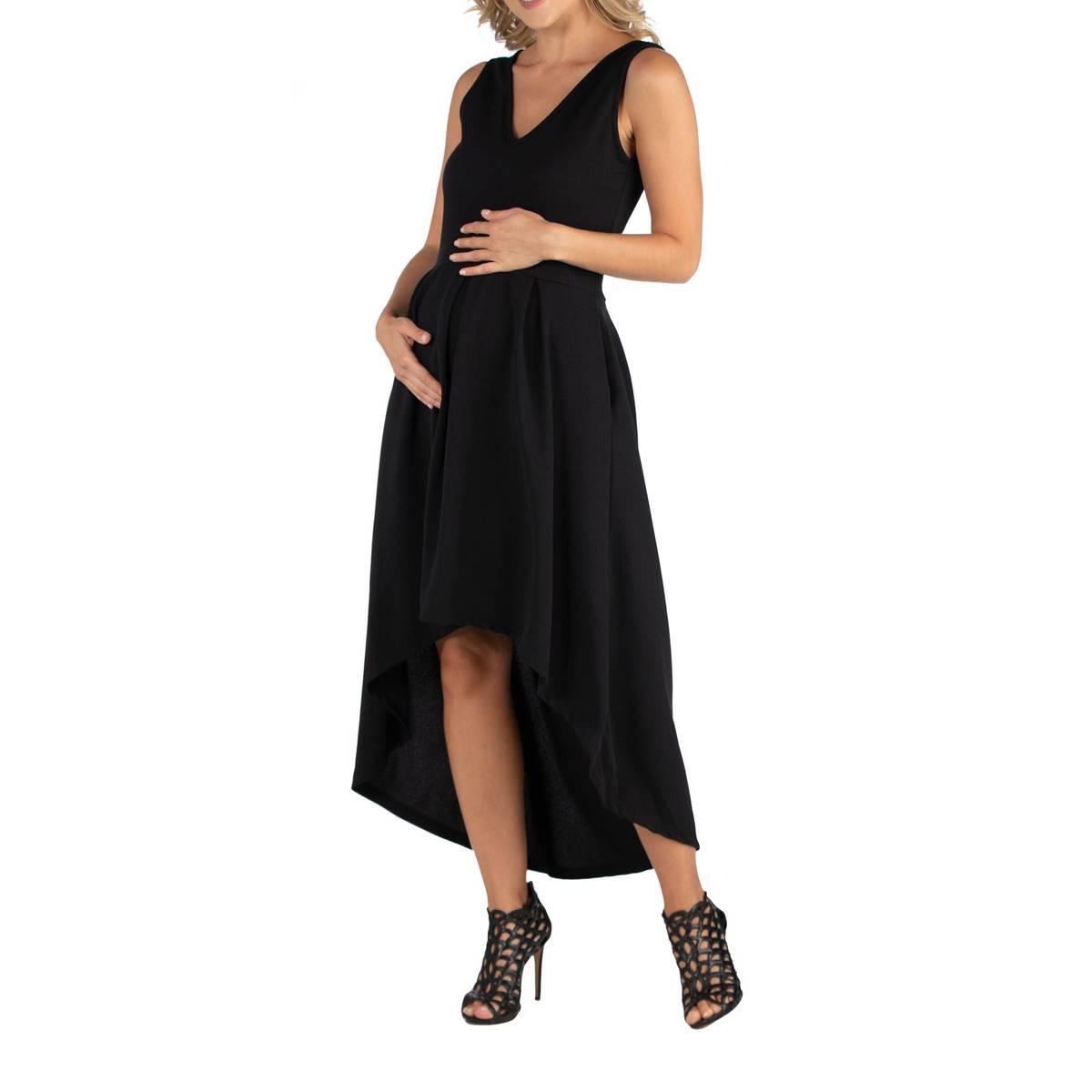 This party ready Womens 24/7 Comfort Apparel high low party maternity dress has everything you could wish for! A stylish fit featuring a bold high low hemline, v-neck, sleeveless design, and pockets for a finishing touch. With its modern twist on the classic party dress, this style is perfect for a wedding guest look or any special occasion. Made from a soft comfortable stretch material. Available in three year-round colors and machine washable for easy care.