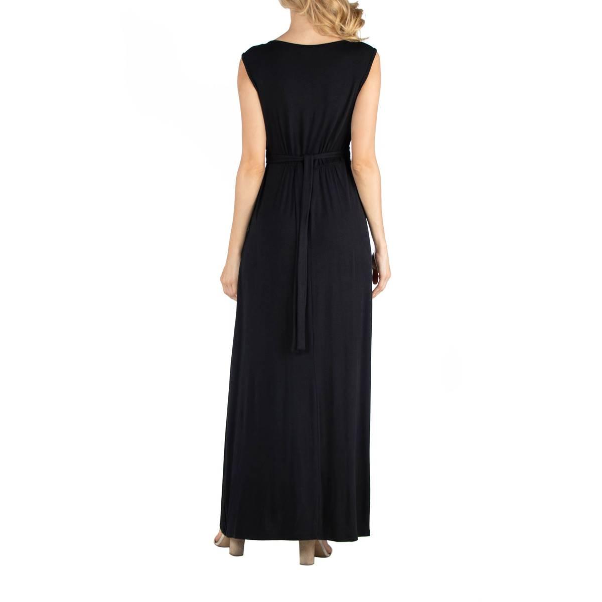 This Womens 24/7 Comfort Apparel maternity maxi dress is the definition of fun and elegant. Perfect for the warmer months, this grecian inspired maternity dress features a v-neckline, empire waistline, and adjustable attached belt that offers a comfortable fit for all silhouettes.