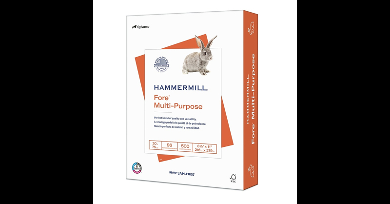 Ensure your office paperwork has a professional look with this Hammermill Fore multipurpose copy paper. ColorLok technology helps ink dry faster to prevent smudges and smears, while the opaque finish prevents ink from showing through on the reverse side of each sheet. This Hammermill Fore multipurpose copy paper features a 20-pound paper weight, making it ideal for printing reports, forms and memos. Reliable multipurpose paper is perfect for everyday use. Paper weight: lbs. ; 50. 8 lb. Text. Sheet dimensions: 8. 5" x 11" (US letter). Brightness rating: 96. Bond finish. 500 sheets per ream. Acid Free. Color: FSC Certified. Handle your office's daily printing and copying needs with this Hammermill Fore 8. 5 x 11-inch multipurpose copy paper.