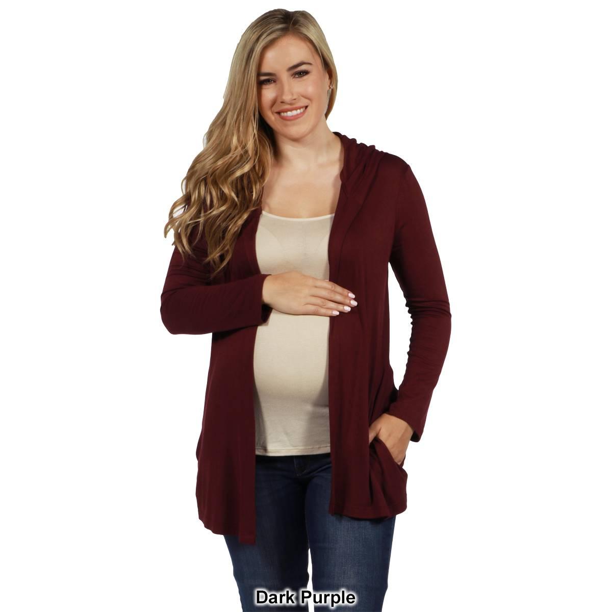 This Plus Size 24/7 Comfort Apparel maternity cardigan is the best of both worlds. The comfort of a hoodie and the polished look of a cardigan. Featuring long sleeves, cardigan style pockets, and an attached hoodie.