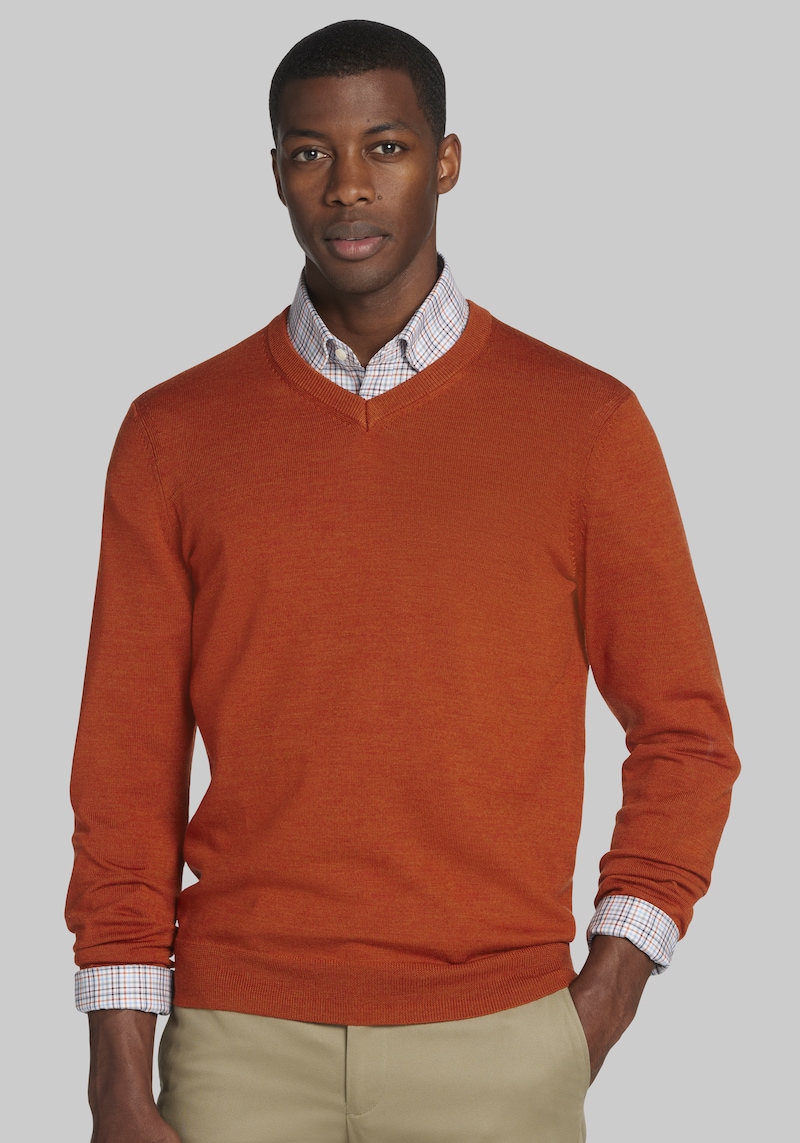 Buy Men's Big & Tall Jos. A Bank Merino Wool V - Neck Sweater - Big & Tall at Jos. A. Bank,Orange, TALL for $60.00 at @ Josbank.com