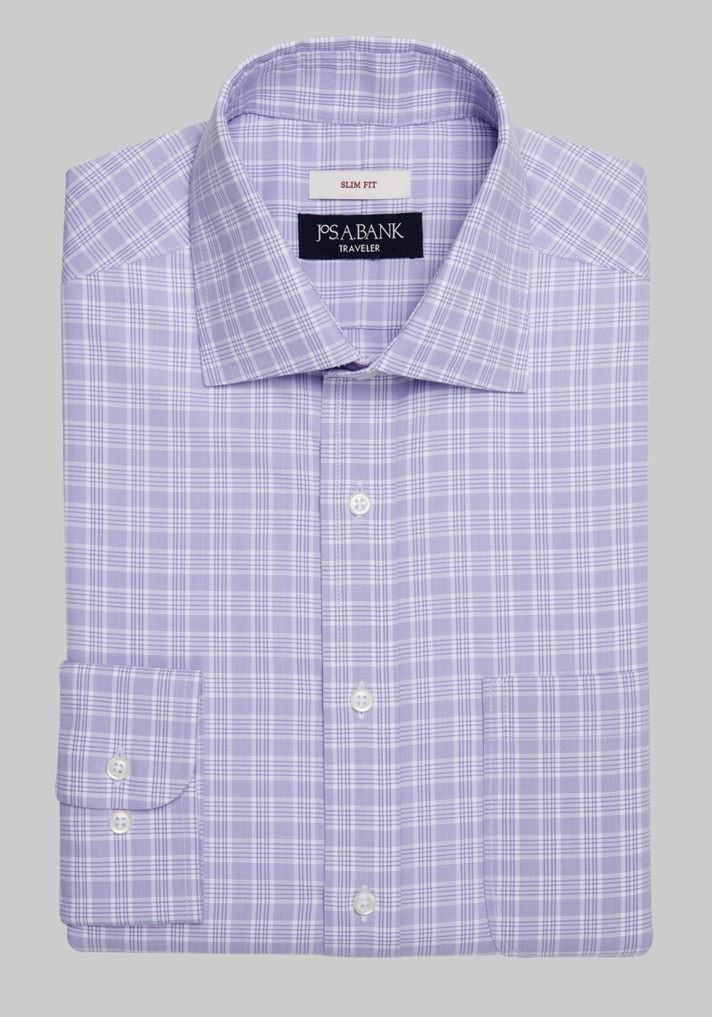 Buy Men's Traveler Collection Slim Fit Spread Collar Check Dress Shirt at Jos. A. Bank,Purple, 1/2 X 32/33 for $55.00 at @ Josbank.com