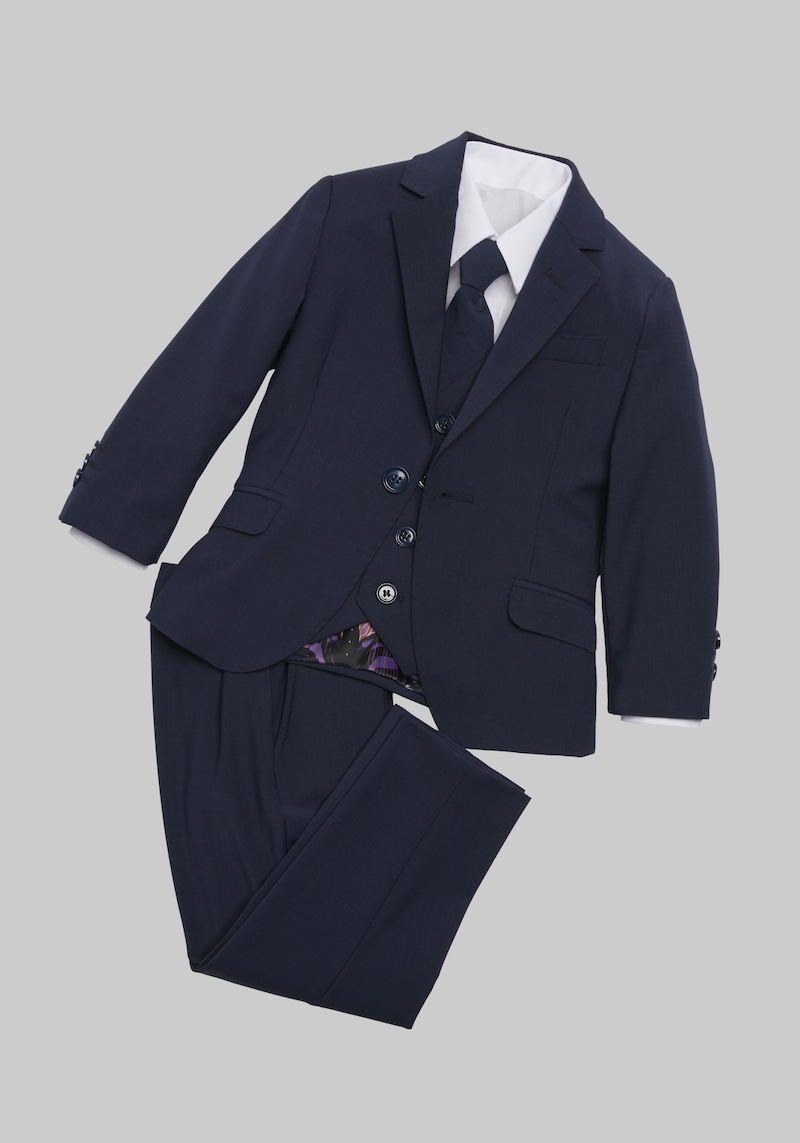 Dress your little gentleman in big guy style with this five-piece complete suit set. This stylish childrens suit is perfect for weddings, especially for ringbearers, and any other formal wear occasion. This handsome collection features a dress shirt, pre-tied tie, vest, coat, and slacks. Cleo By Peanut Butter Collection Slim Fit Luxor 5-Piece Suit Set.