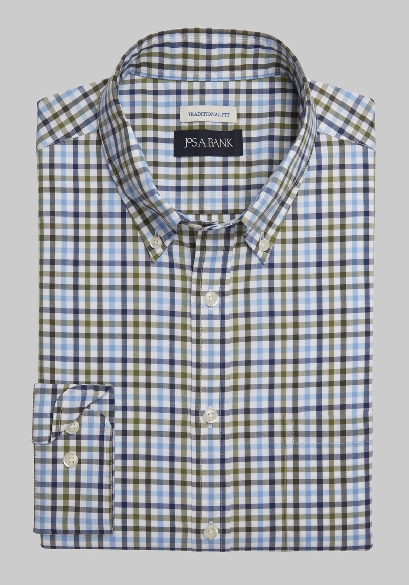 Buy Men's Jos. A. Bank Comfort Stretch Traditional Fit Long Sleeve Casual Shirt at Jos. A. Bank, Blue/Green/Olive, Size X for $50.00 at @ Josbank.com