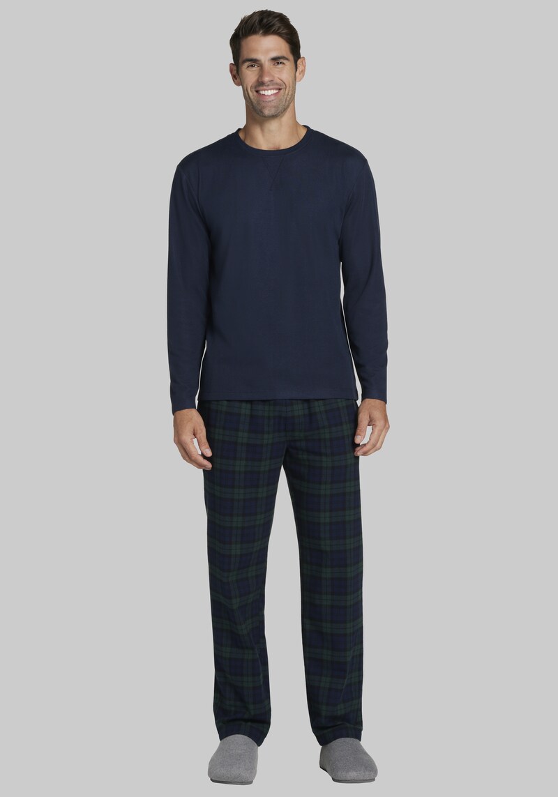 Buy Men's Jos. A. Bank Long Sleeve Crew & Plaid Pant Pajama Set at Jos. A. Bank, Blue/Greenplaid/Navy, Size for $50.00 at @ Josbank.com