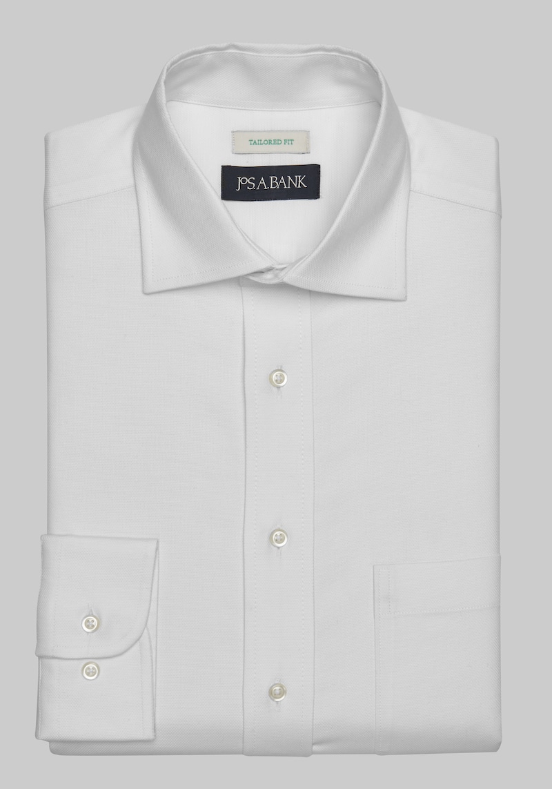Oxford shirts like this one from Jos. A. Bank are an extremely versatile wardrobe choice, walking the line between casual and professional with ease. Featuring easy-care fabric with a wrinkle-resistant finish, it can be worn with chinos or even a sportcoat and jeans for a relaxed look thats still professional. Jos. A. Bank Tailored Fit Oxford Dress Shirt.