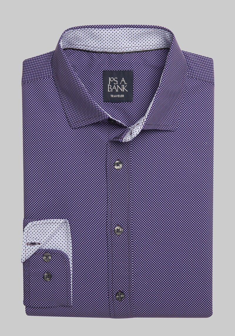 Buy Men's Big & Tall Traveler Tailored Fit 4-Way Stretch Dot Casual Shirt Big & Tall at Jos. A. Bank, Plum/Purple/White, TALL for $50.00 at @ Josbank.com