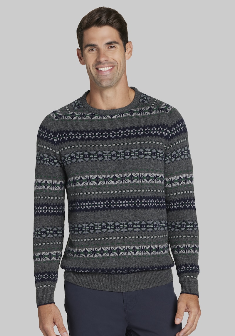 Buy Men's Big & Tall Jos. A. Bank Tailored Fit Fair Isle Crew Neck Sweater at Jos. A. Bank, X Tall for $80.00 at @ Josbank.com