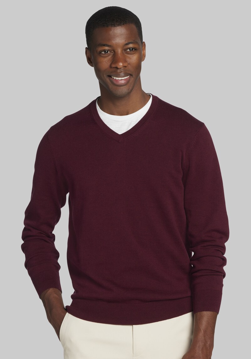 Buy Men's Big & Tall Jos. A Bank Pima Cotton V - neck Sweater - Big & Tall at Jos. A. Bank, Burgundy TALL for $50.00 at @ Josbank.com