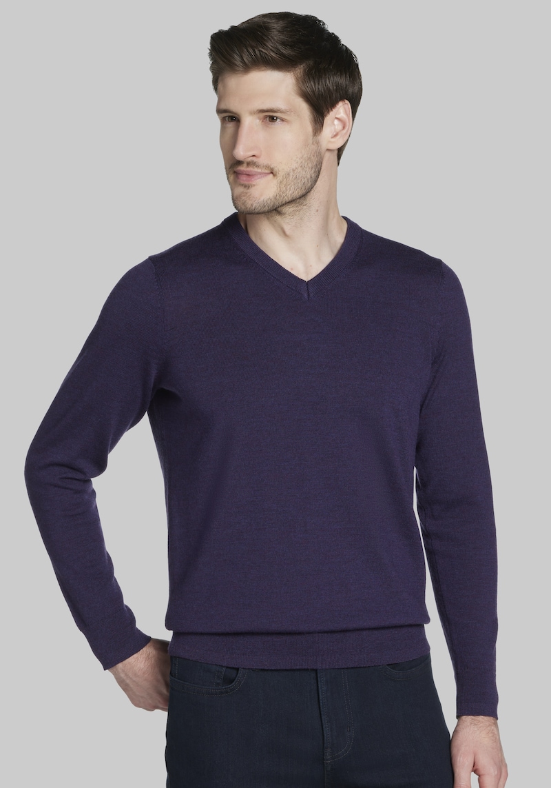 Crafted from 100 merino wool, this sweater offers unparalleled softness and a luxurious feel. Unlike traditional wool, merino wool is exceptionally fine, ensuring it wont itch. The classic V-neck adds a touch of timeless style, making it a versatile piece for layering or wearing on its own. Perfect for elevating your everyday look or enjoying cozy nights in, this sweater is an investment youll treasure for years to come. Jos. A Bank Merino Wool V - Neck Sweater - Big & Tall.