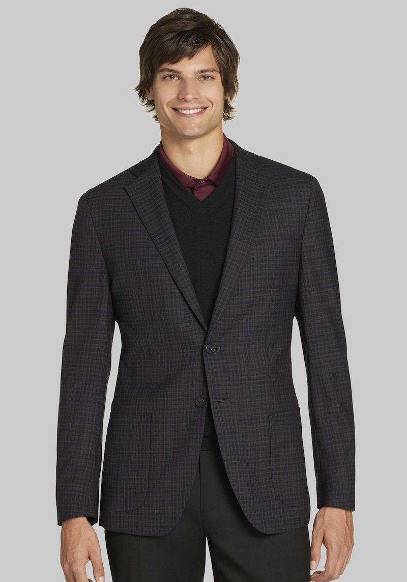 Crafted from a luxurious blend of wool with a hint of stretch, this sportcoat is both comfortable and stylish. Whether youre pairing it with jeans for a relaxed look or a button-down shirt and tie for a dressier event, its a reliable choice that youll reach for again and again. Jos. A. Bank Slim Fit Plaid Sportcoat.