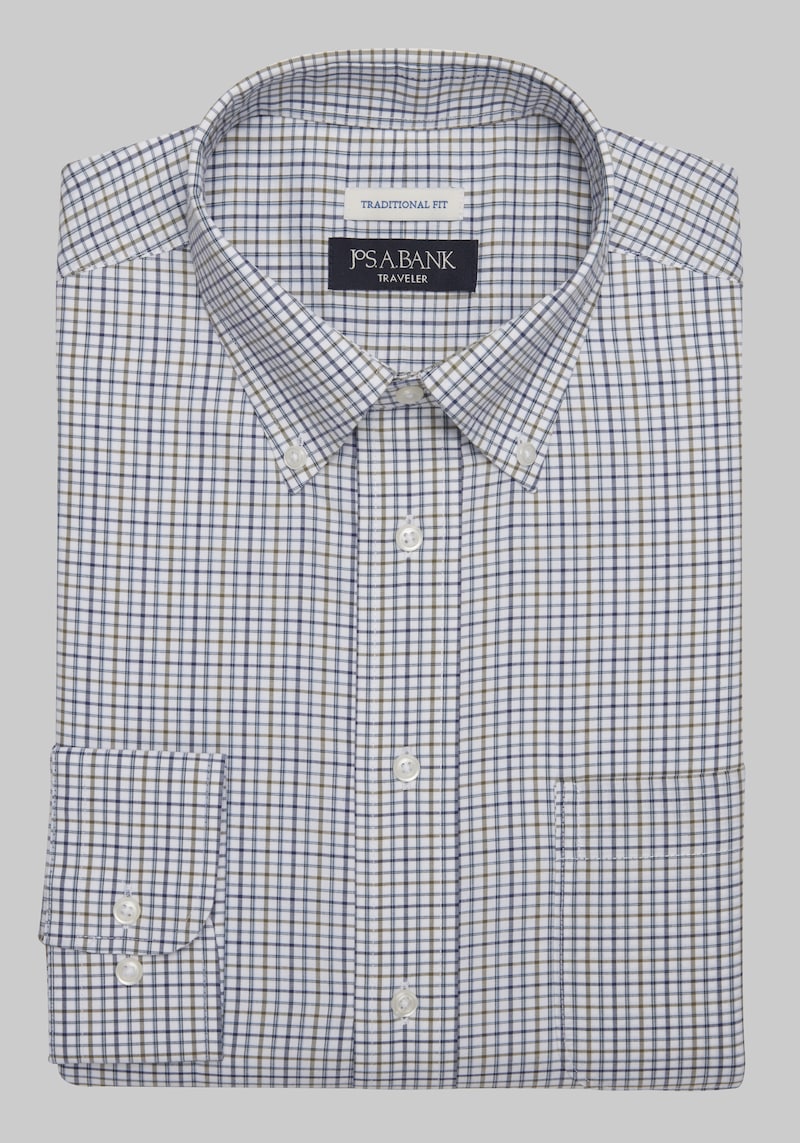 Buy Men's Big & Tall Traveler Collection Traditional Fit Button-Down Collar Check Dress Shirt at Jos. A. Bank, Blue X 36/37 for $60.00 at @ Josbank.com