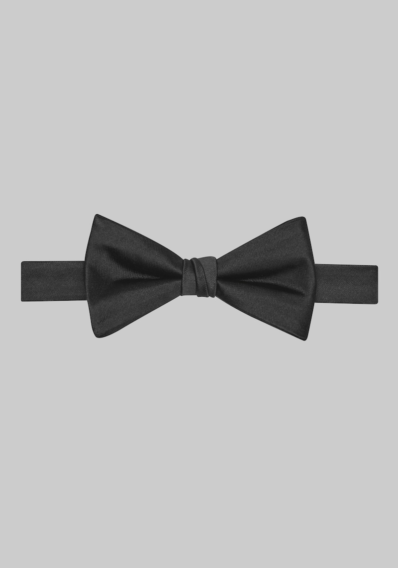 A solid hued bow tie adds a touch of sophistication to your formal attire. The pre-tied design eliminates the need for mastering complicated tying techniques, ensuring a perfect knot every time. Made from 100 silk, this fine accessory has a soft, elegant shape and a beautiful sheen. A fully adjustable band ensures a comfortable fit for all sizes. Jos. A. Bank Pre-Tied Bow Tie.