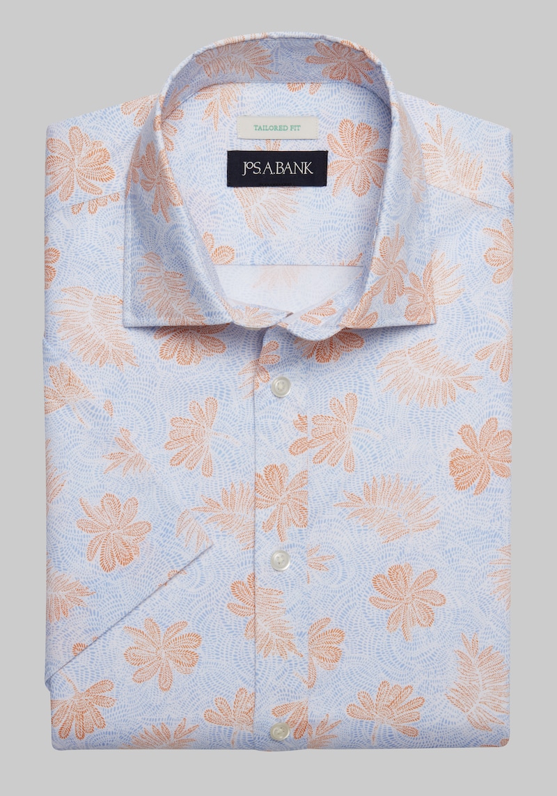 Buy Men's Jos. A. Bank Tailored Fit Tropical Print Short Sleeve Casual Shirt at Jos. A. Bank, Autumn Sun/Blue/Orange, Size for $45.00 at @ Josbank.com