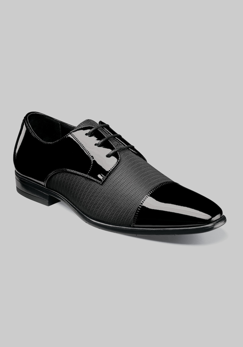 Classic fashion meets contemporary style in these formal Oxfords from Stacy Adams. It pairs polished, patent leather with a finely woven, textile upper for a refined, regal look. Cap toe. Breathable, leather linings. Fully cushioned, memory-foam insole for all-day comfort. Non-leather outsole. Imported. Stacy Adams Pharaoh Cap Toe Formal Oxfords.