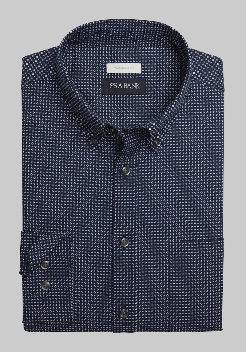 Strike the perfect balance between dress and casual with this handsome sportshirt from Jos. A. Bank. Woven from soft cotton with a hint of stretch, it pairs a button-down collar with a flattering, Tailored Fit. Jos. A. Bank Comfort Stretch Long Sleeve Sportshirt - Big & Tall.