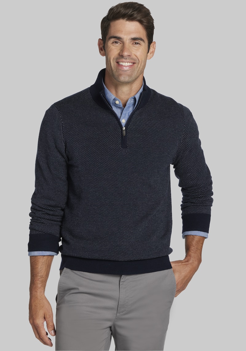 Buy Men's Jos. A. Bank Tailored Fit Twill Jacquard 1/4 Zip Sweater at Jos. A. Bank, Blue Size for $80.00 at @ Josbank.com