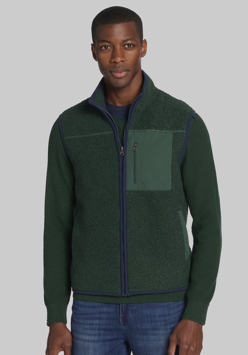 Men's Big & Tall Jos. A. Bank Tailored Fit Faux Sherpa Vest at Jos. A. Bank, Green TALL