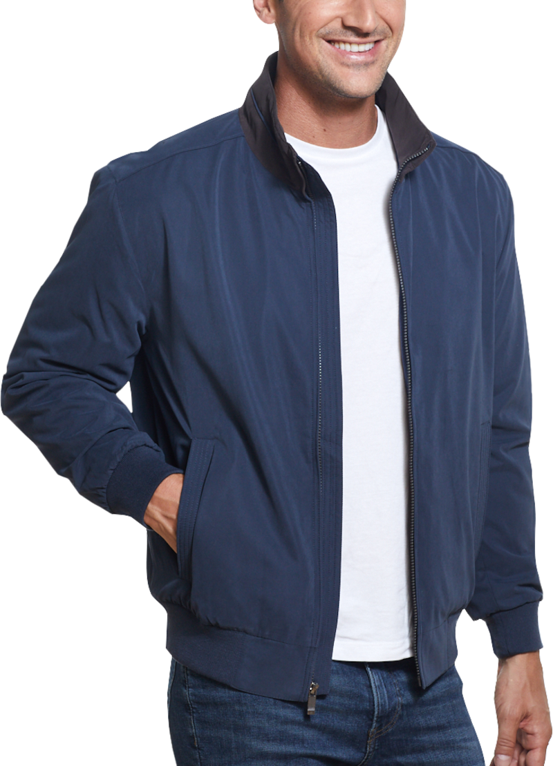 Men's Weatherproof Tailored Fit Microfiber Fleece-Lined Bomber Jacket at Jos. A. Bank, Blue Size XX - Outerwear