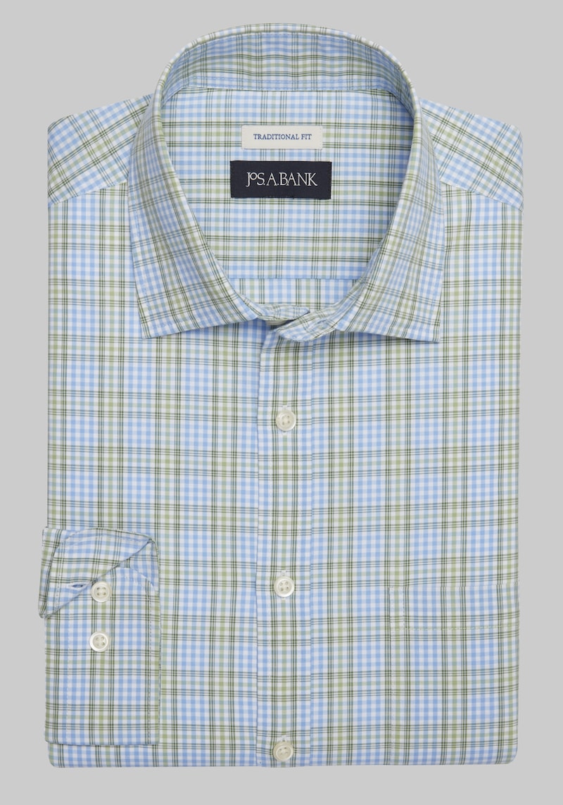 Buy Men's Big & Tall Jos. A. Bank Comfort Stretch Traditional Fit Long Sleeve Casual Shirt - Big & Tall at Jos. A. Bank,Green, X Tall for $50.00 at @ Josbank.com