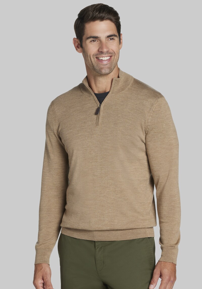 Buy Men's Big & Tall Jos. A Bank Merino Wool Quarter Zip Sweater at Jos. A. Bank,Taupe, Size XX for $70.00 at @ Josbank.com