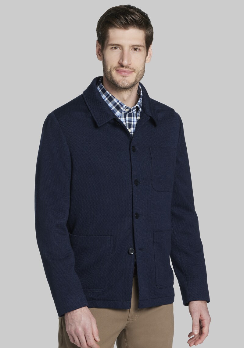 The shirt jacket its the perfect layering piece when the weather cant decide what to do. This versatile garment bridges the gap between a jacket and a shirt, offering lightweight warmth on cooler days. Whether you layer it over a tee or a button-down, its a must-have for your wardrobe. Jos. A. Bank Knit Shirt Jacket - Big & Tall.