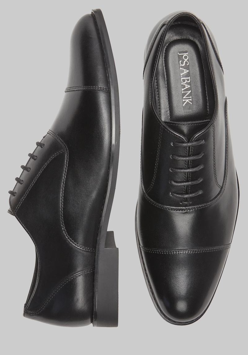 These Oxfords seamlessly blend timeless design with modern innovation. The classic cap-toe silhouette and rich leather upper ensure a sophisticated and professional look, while a comfort sole provides superior cushioning and flexibility. This versatile shoe goes beyond the boardroom, transitioning from formal wear with suits to business casual with chinos and a blazer, all while offering a relaxed yet polished look. Invest in style and comfort with a dependable and stylish staple in your wardrobe. Jos. A. Bank Cap Toe Oxfords.