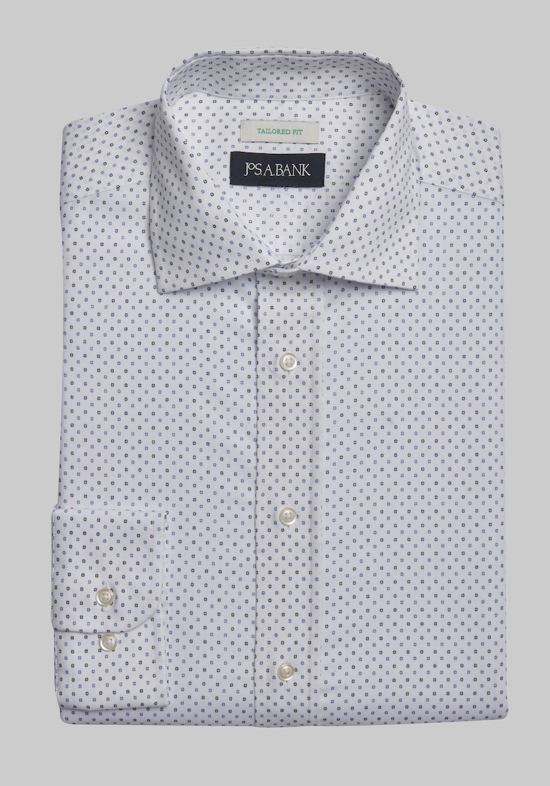 Easy-care fabric with a wrinkle-resistant finish makes this dress shirt from Jos. A. Bank a go-to favorite. Tailored with a hint of stretch, it keeps you moving comfortably all day long. Jos. A. Bank Tailored Fit Spread Collar Geo Dress Shirt.