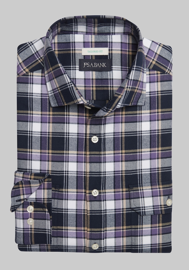 Buy Men's Jos. A Bank Lux Flannel Tailored Fit Long Sleeve Casual Shirt at Jos. A. Bank, Navy/Purple, Size for $50.00 at @ Josbank.com