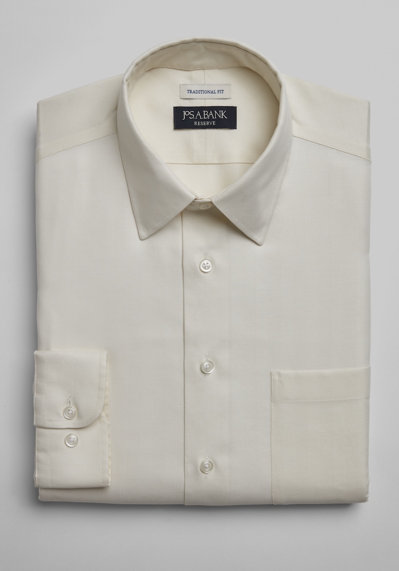 Buy Men's Big & Tall Reserve Collection Traditional Fit Herringbone Dress Shirt at Jos. A. Bank,Ecru/White, X 34/35 for $70.00 at @ Josbank.com