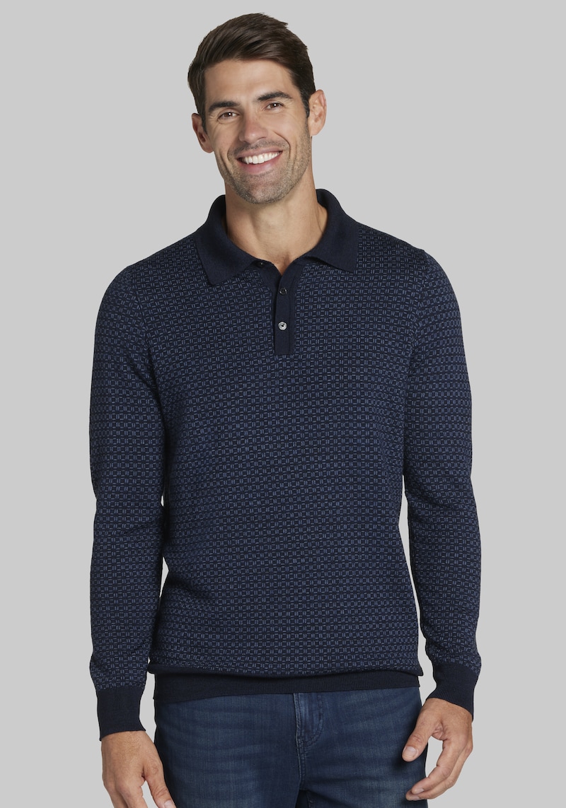 Buy Men's Big & Tall Jos. A. Bank Tailored Fit Long Sleeve Polo Sweater at Jos. A. Bank, Blue X Tall - Shirts for $60.00 at @ Josbank.com