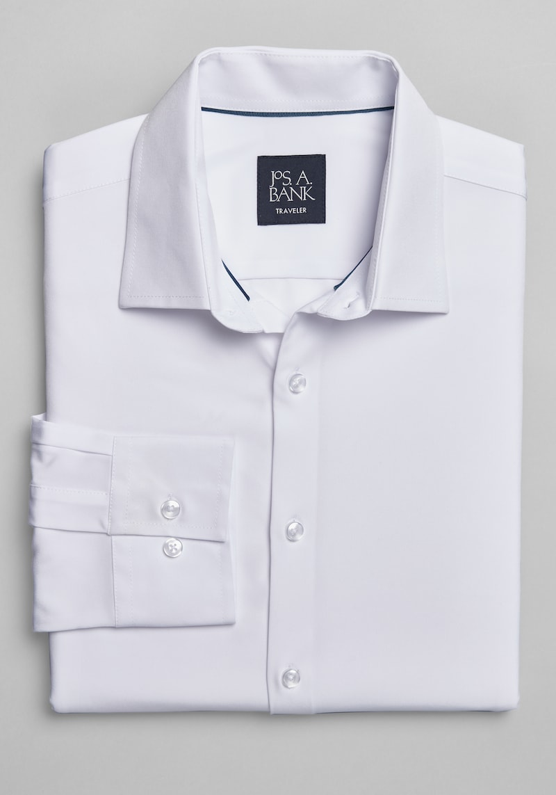 Buy Men's Traveler Performance Tailored Fit 4 Way Stretch Long Sleeve Casual Shirt at Jos. A. Bank, Cream Size for $50.00 at @ Josbank.com