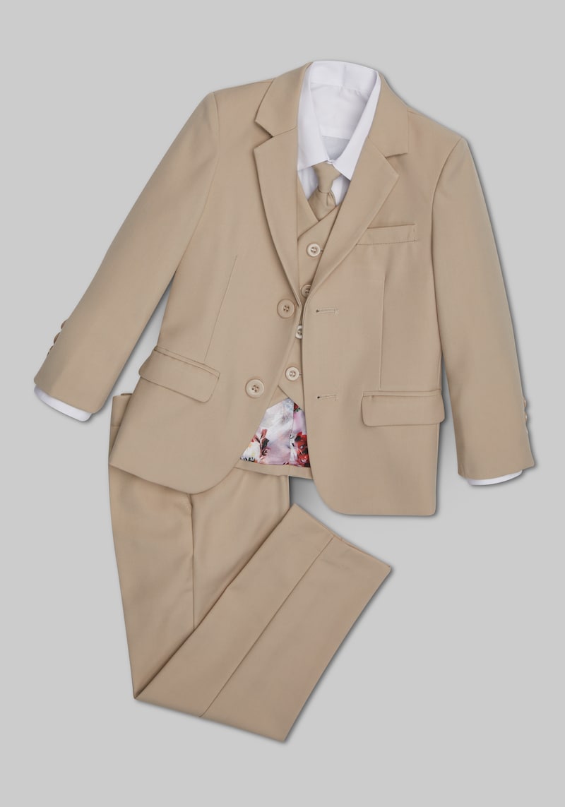 Dress your little gentleman in big guy style with this five-piece toddler suit set. Tailored with a Slim Fit, this stylish childrens suit is perfect for weddings, especially for ringbearers, and any other formal occasion. This handsome ensemble features a dress shirt, pre-tied tie, vest, jacket, and pants. Peanut Butter Collection 007 Slim Fit Toddlers Suit.