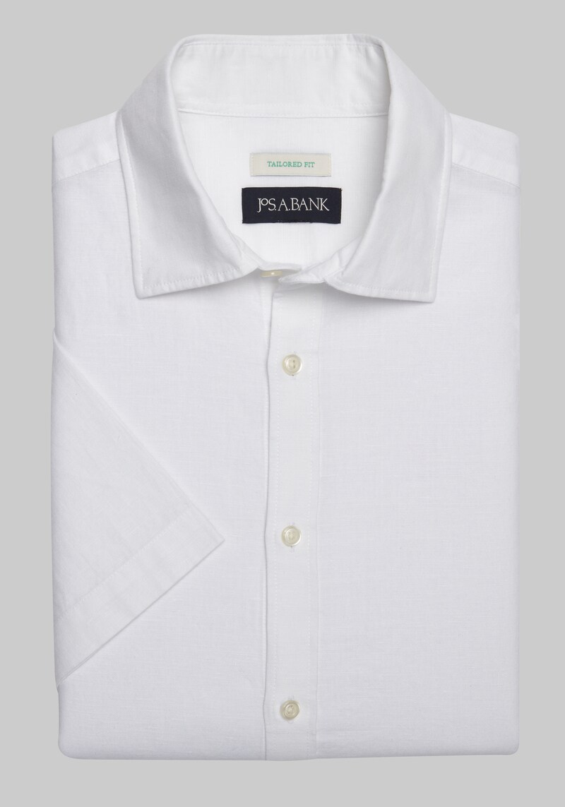 Buy Men's Jos. A. Bank Tailored Fit Linen Blend Short Sleeve Casual Shirt at Jos. A. Bank, Cream Size for $45.00 at @ Josbank.com