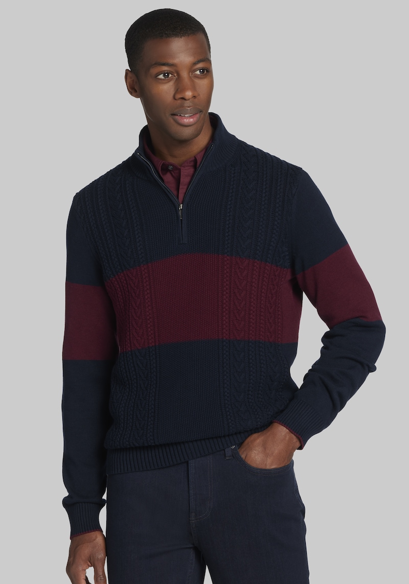 Buy Men's Jos. A. Bank Chest Stripe 1/4 Zip Sweater at Jos. A. Bank, Blue/Burgundy/Navy Blazer, Size for $80.00 at @ Josbank.com