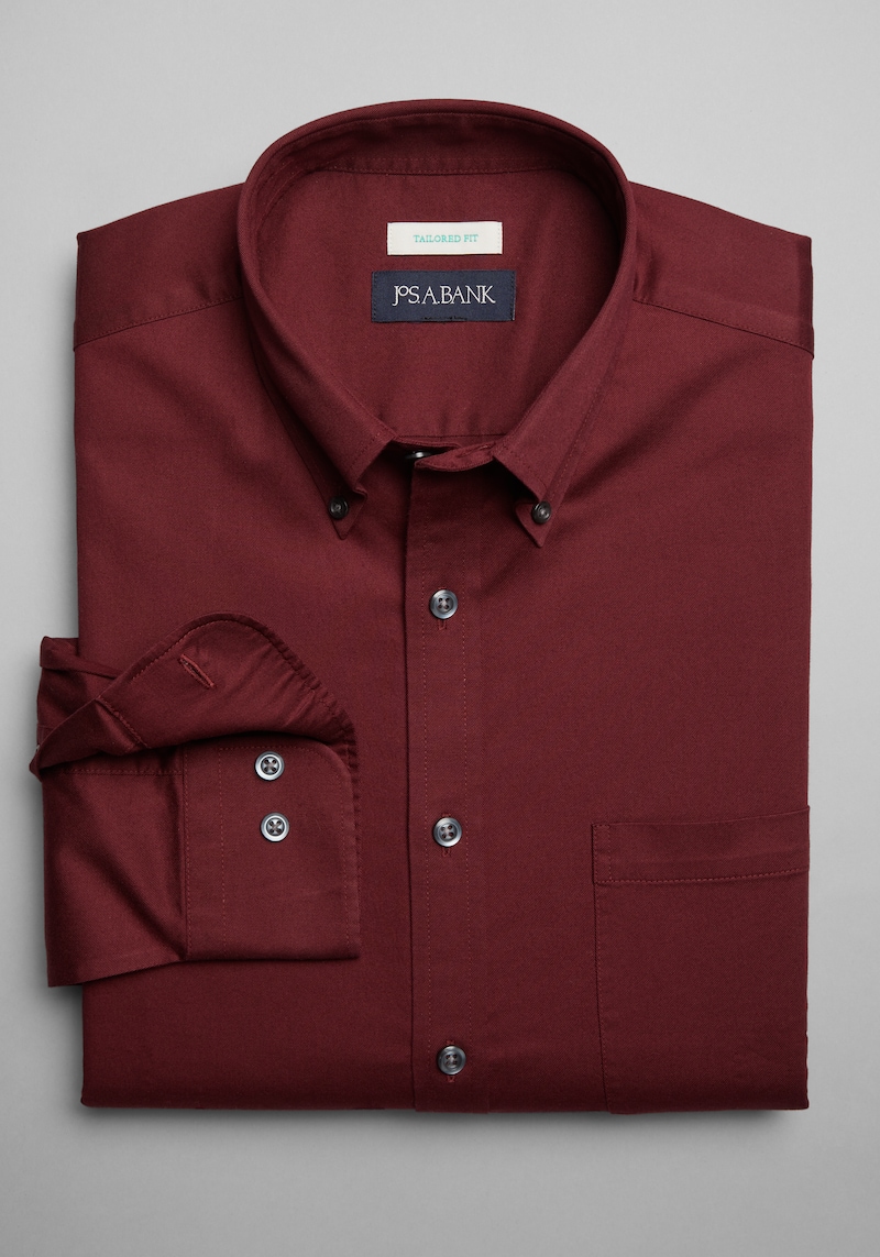 Buy Men's Jos. A. Bank Comfort Stretch Tailored Fit Twill Casual Shirt at Jos. A. Bank, Burgundy Size for $50.00 at @ Josbank.com