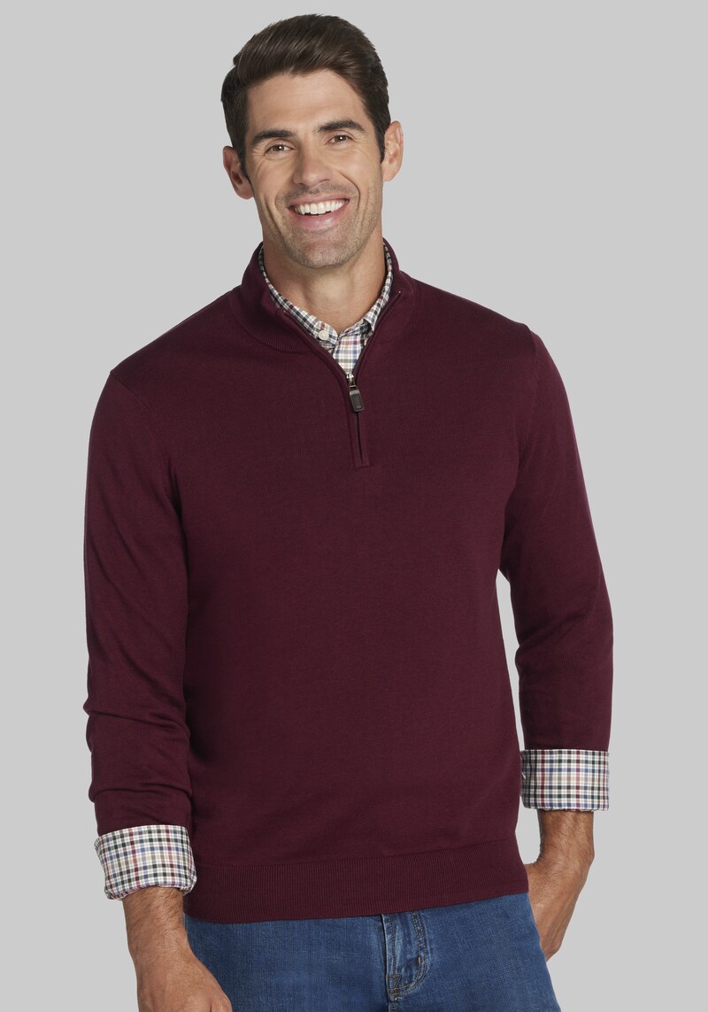 Buy Men's Jos. A Bank Pima Cotton Quarter Zip Sweater at Jos. A. Bank, Burgundy Size for $60.00 at @ Josbank.com