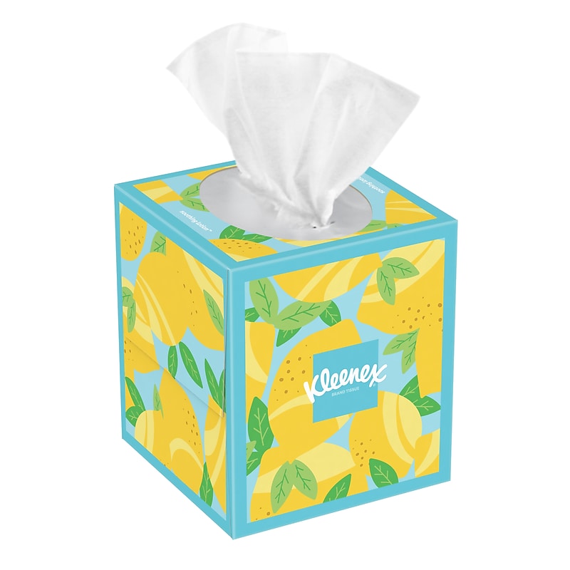 Keep the office stocked during cold and flu season with this pack of facial tissue. Kleenex Soothing Lotion tissues are clinically-proven to be the softest, most gentle lotion tissue* (among national brands), making them perfect for people who want a soothing, gentle touch - whether for allergies, a cold or flu, or frequent, everyday use. The unique lotion formulation, which helps to make these tissues more gentle, is made with aloe vera and vitamin E. Lotion facial tissues help soothe irritated noses by locking in moisture better than regular tissues. 2-ply construction provides superior strength and durability. Contains 60 tissues per box, 27 boxes per pack for long-term use, 1620 total tissues. These Kleenex Soothing Lotion* tissues are great for everyday use. FSC certified. Dispenser box makes it easy to pull out a single tissue. Integrated lotion helps defend against dry, chapped skin. Give employees an ample supply of quality tissue with this 27-box pack of Kleenex Soothing Lotion facial tissues.