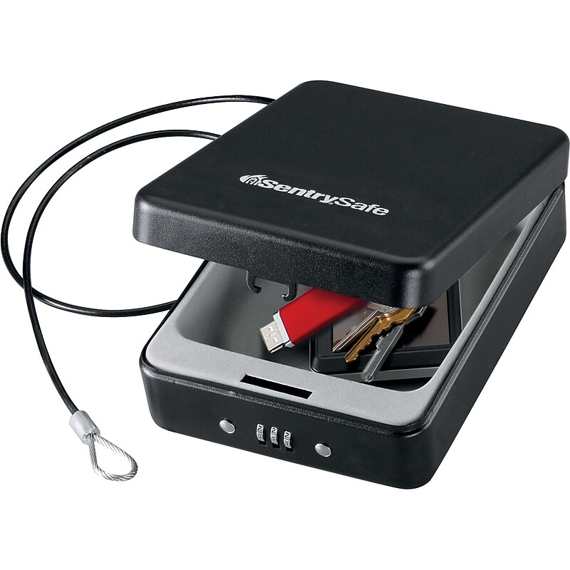 Delivery details : Safes ship direct from the manufacturer. Curbside Service: Delivery will be made to the first-floor loading dock, outside. . Programmable 3-number mechanical lock for simplicity of use. 05 cubic feet capacity. Steel tethering cble for increased security. Durable solid steel construction; protection during frequent travel. Soft interior lining. Sentry Compact Safe delivery will be made to the first floor loading dock, outside and safes ship direct from the manufacturer.