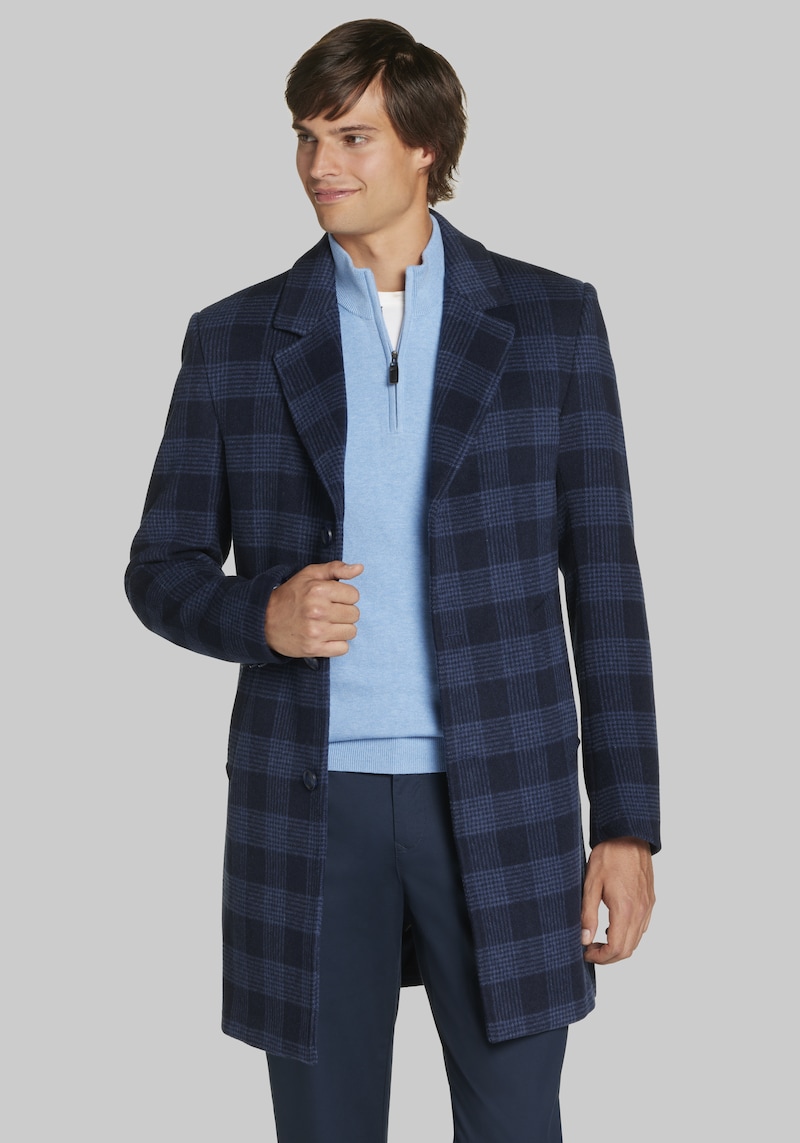 Buy Men's Jos. A. Bank Tailored Fit Plaid Overcoat at Jos. A. Bank, Blue Size - Outerwear for $179.00 at @ Josbank.com