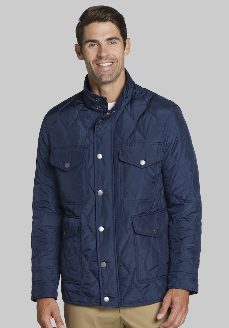 Level up your outerwear with our quilted jacket. This outdoor essential offers both warmth and style, making it a perfect transitional piece. The classic quilted design is timeless and the button-up front adds a touch of polish. Functional doesnt have to mean boring. The four snap-closure pockets offer both security and a touch of rugged appeal. Jos. A. Bank Quilted Jacket - Big & Tall.