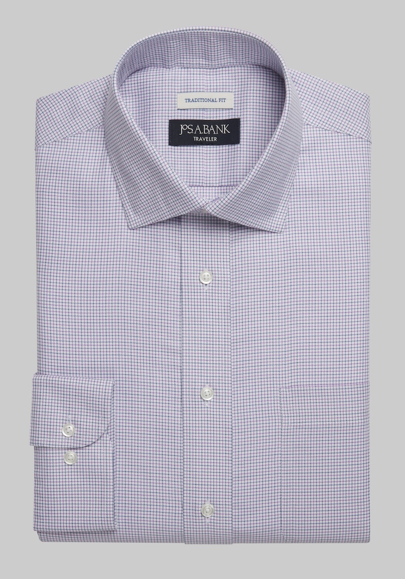 Buy Men's Traveler Collection Traditional Fit Check Dress Shirt at Jos. A. Bank, Blue/Lavender/Purple, X 34/35 for $55.00 at @ Josbank.com