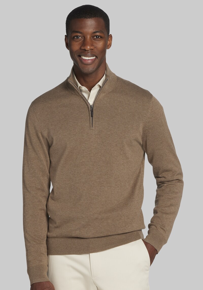 Men's Big & Tall Jos. A Bank Pima Cotton Quarter Zip Sweater - Big & Tall at Jos. A. Bank,Tan, X Big