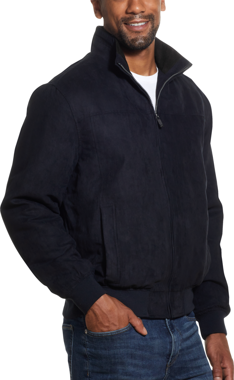 A versatile favorite, this jacket from Weatherproof has a contemporary style we love. Made of easy-care faux suede, it features quilted lining and soft corduroy trim inside the collar. Weatherproof Tailored Fit Bomber Jacket.