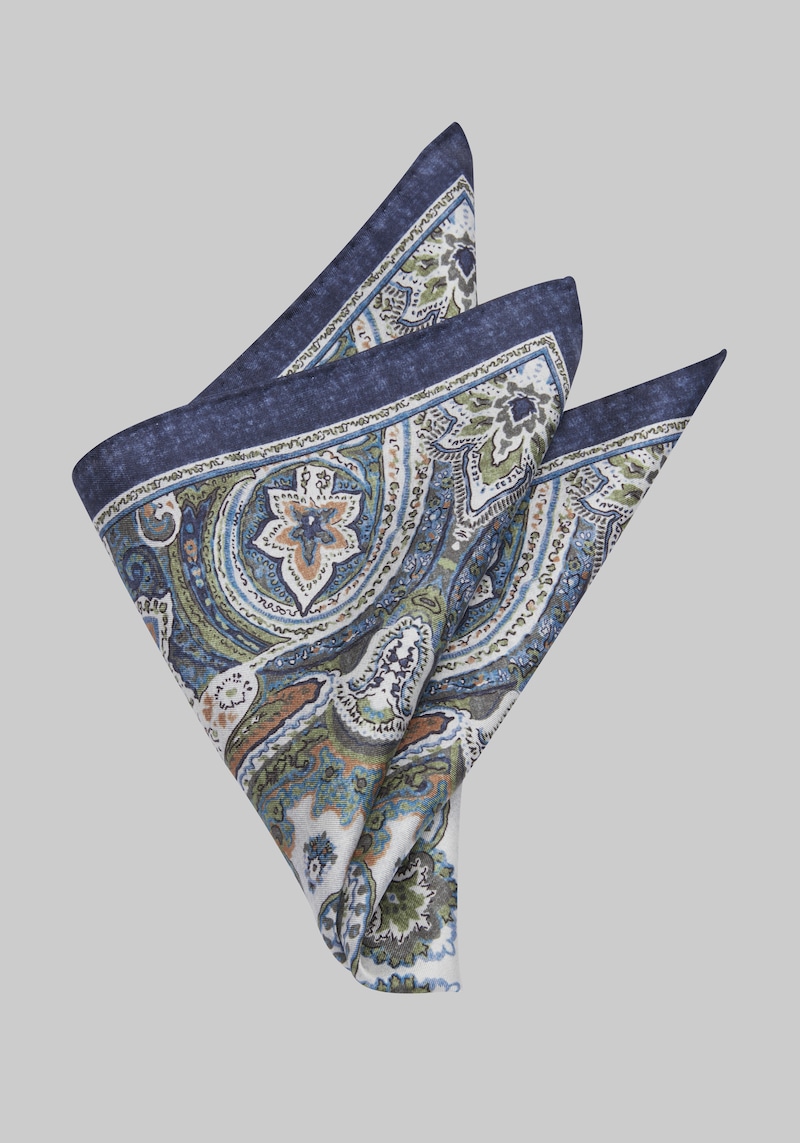 Men's Jos. A. Bank Center Medallion Hand Block Pocket Square at Jos. A. Bank, Blue