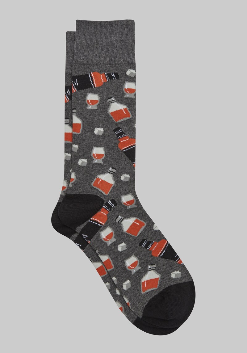 Raise a toast to these socks by Egara, featuring a playful pattern of whiskey bottles and double old-fashioned glasses. Jos. A. Bank Drinks Socks.