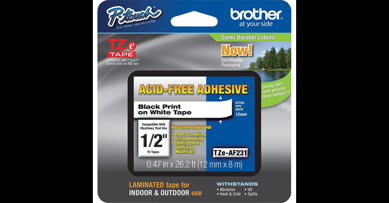 Brother P-touch TZe-AF231 Laminated Acid Free / Photo Safe Label Maker Tape, 1/2" x 26-2/10',(TZe-AF231)