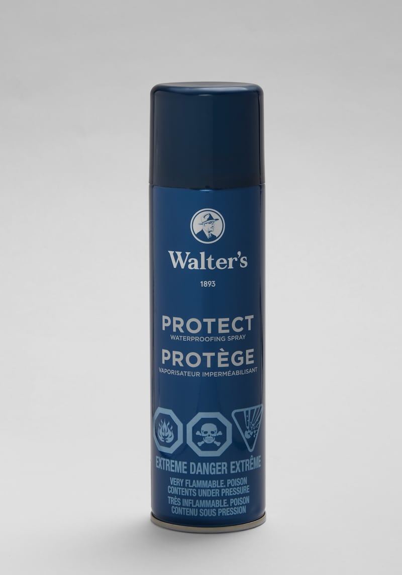 Works on all kinds of leather, suede, nubuck and textiles. PFOS/ PFOA free formula. Creates an invisible waterproof barrier that helps repel dirt and stains. 7. 9 oz. Imported. Walter's Protect Waterproof Spray.